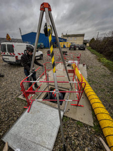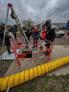 Propres aux besoins des apprenants lors des formations de prévention des risques en espaces confinés une cuve a été installée pour reproduire le plus fidèlement possible les environnements de travail. Elle permet également aux apprenants d’intervenir en cuve en utilisant les systèmes de sécurité obligatoires.